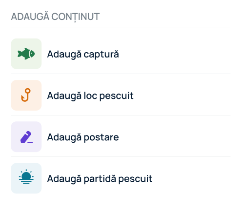 Împărtăși capturile, postările și locurile tale de pescuit cu ceilalți pescari. Dacă nu vrei să dezvălui locația exactă a capturilor tale, ai opțiunea de a adăuga capturi cu locație secretă, vizibile doar pentru tine.